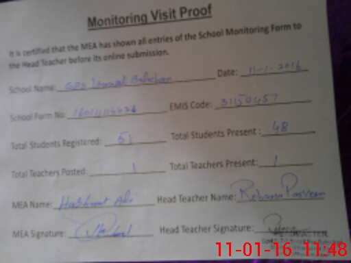 | EMIS Code: 31150457 | Name of School: GPS ISMAEEL BALOCHAN | |||
