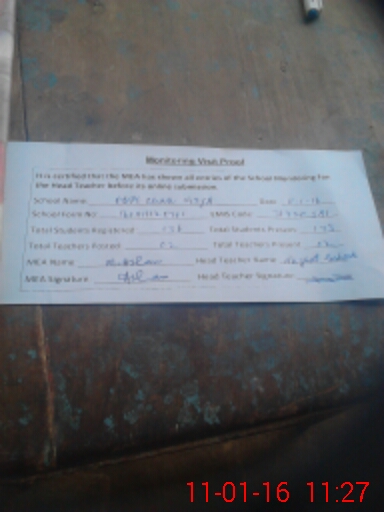 | Attendance Register | Head Teacher | MEA with School | Visit Proof |