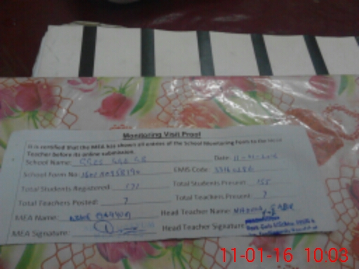| Attendance Register | Head Teacher | MEA with School | Visit Proof |