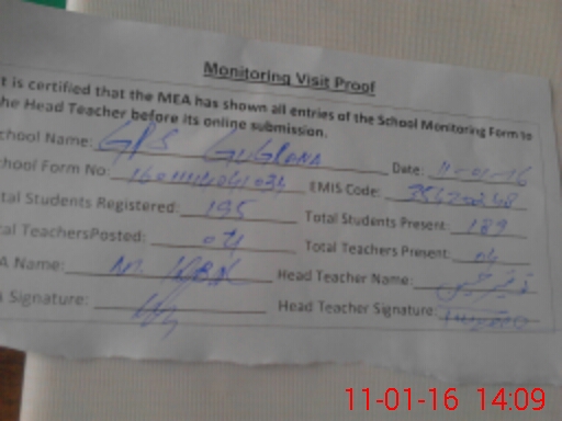 | Attendance Register | Head Teacher | MEA with School | Visit Proof |