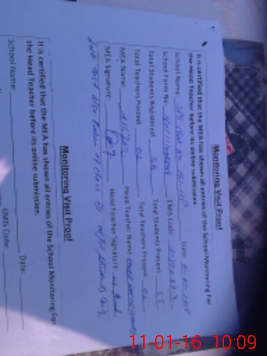 | Monitoring Date: 11-01-2016 | Start Time: 11-01-2016 09:55 AM | End Time: 11-01-2016 10:10 AM | Name of MEA: Mu**** As**** | |