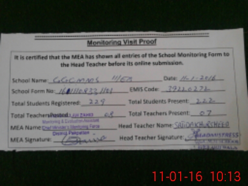 | Certified that this School was Inspected by the Undersigned MEA/DMO Today and the Information Stated Above is as Per Record. | |||||