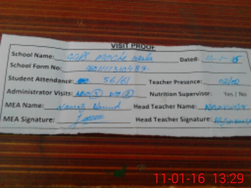 | Attendance Register | Head Teacher | MEA with School | Visit Proof |