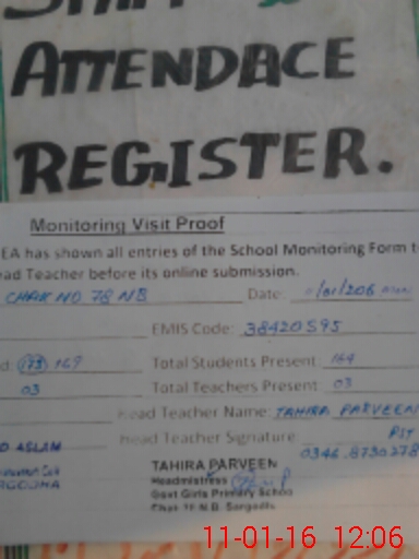 | EMIS Code: 38420595 | Name of School: GGPS CHAK NO.78 NB SARGODHA | |||