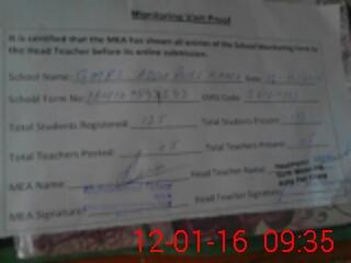 | Attendance Register | Head Teacher | MEA with School | Visit Proof |