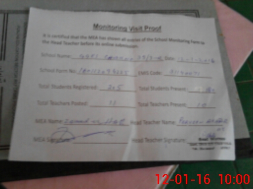 | Certified that this School was Inspected by the Undersigned MEA/DMO Today and the Information Stated Above is as Per Record. | |||||