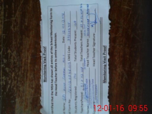 | School Visited by School Health & Nutrition Supervisor (No. of Visits) | 1 | Name1: | SYED FARHAN HAIDER | Name2: | |