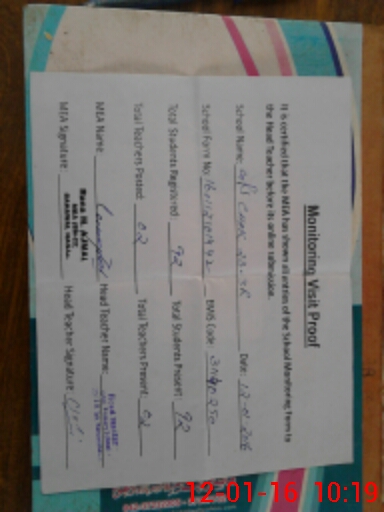 | Attendance Register | Head Teacher | MEA with School | Visit Proof |