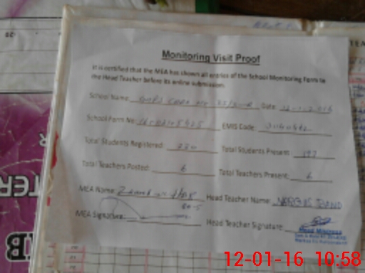 | Attendance Register | Head Teacher | MEA with School | Visit Proof |