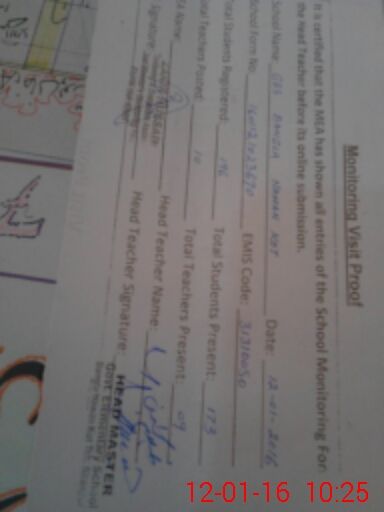 | Certified that this School was Inspected by the Undersigned MEA/DMO Today and the Information Stated Above is as Per Record. | |||||