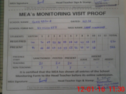 | Attendance Register | Head Teacher | MEA with School | Visit Proof |