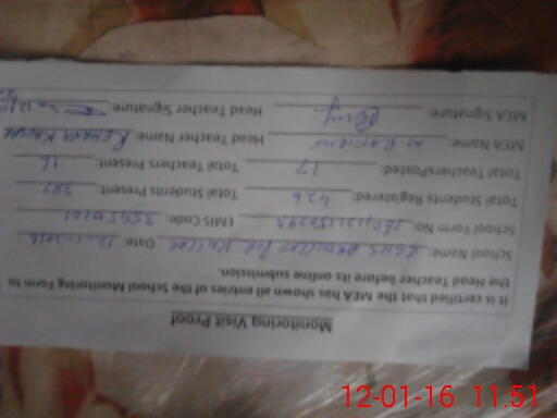 | Certified that this School was Inspected by the Undersigned MEA/DMO Today and the Information Stated Above is as Per Record. | |||||