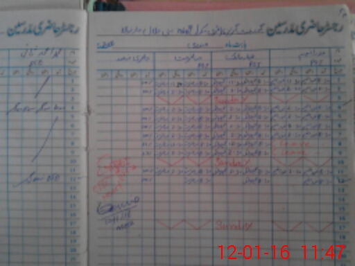 | CNIC | Full Name | Designation | R/C | Absence During Last Calender Month |