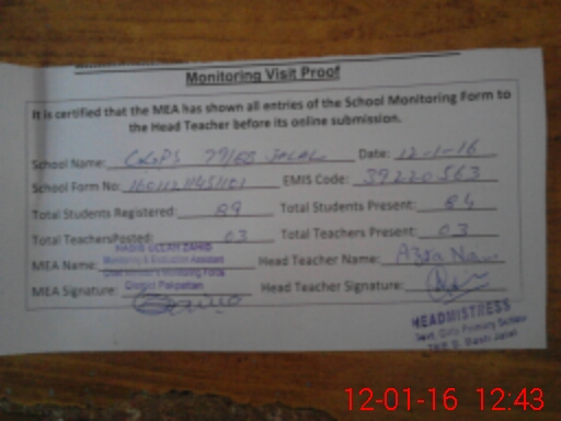 | EMIS Code: 39220563 | Name of School: GGPS 79/EB III basti jalal | |||