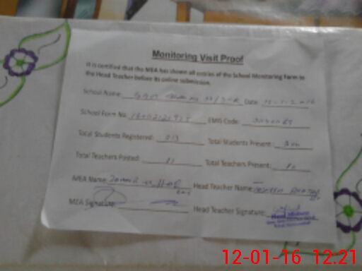 | Attendance Register | Head Teacher | MEA with School | Visit Proof |