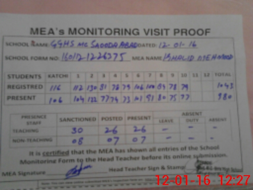| Certified that this School was Inspected by the Undersigned MEA/DMO Today and the Information Stated Above is as Per Record. | |||||