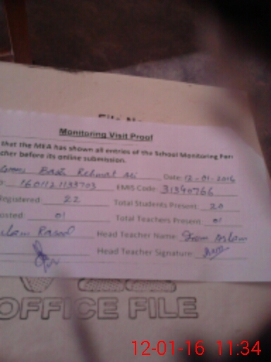 | Attendance Register | Head Teacher | MEA with School | Visit Proof |