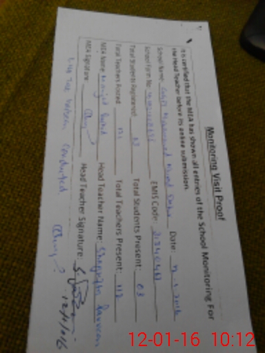 | Attendance Register | Head Teacher | MEA with School | Visit Proof |
