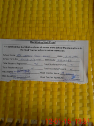 | Attendance Register | Head Teacher | MEA with School | Visit Proof |
