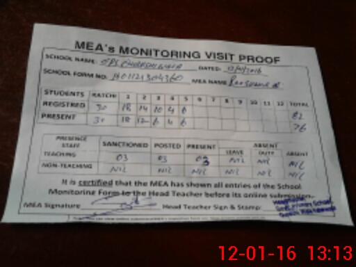 | Attendance Register | Head Teacher | MEA with School | Visit Proof |