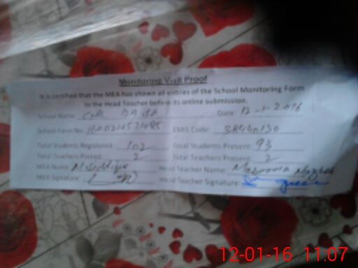| Attendance Register | Head Teacher | MEA with School | Visit Proof |