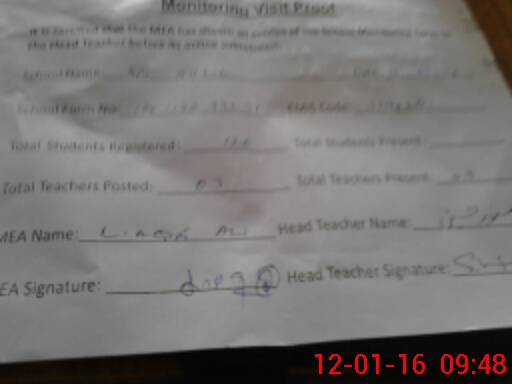 | Attendance Register | Head Teacher | MEA with School | Visit Proof |