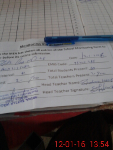 | Attendance Register | Head Teacher | MEA with School | Visit Proof |