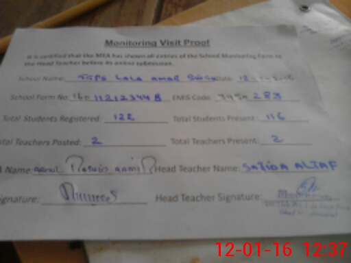 | Attendance Register | Head Teacher | MEA with School | Visit Proof |