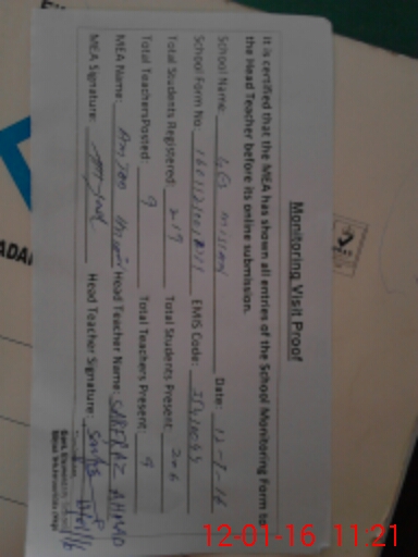 | Certified that this School was Inspected by the Undersigned MEA/DMO Today and the Information Stated Above is as Per Record. | |||||