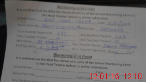 | Certified that this School was Inspected by the Undersigned MEA/DMO Today and the Information Stated Above is as Per Record. | |||||
