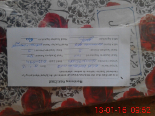 | Monitoring Date: 13-01-2016 | Start Time: 13-01-2016 09:36 AM | End Time: 13-01-2016 09:54 AM | Name of MEA: Mu**** Ar**** -LQ**** | |