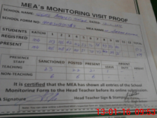 | Certified that this School was Inspected by the Undersigned MEA/DMO Today and the Information Stated Above is as Per Record. | |||||
