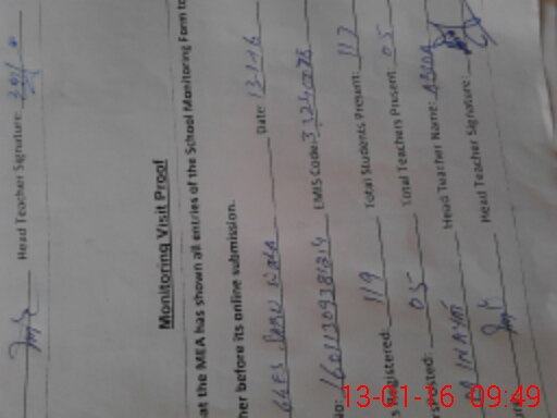 | Attendance Register | Head Teacher | MEA with School | Visit Proof |