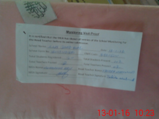 | Certified that this School was Inspected by the Undersigned MEA/DMO Today and the Information Stated Above is as Per Record. | |||||