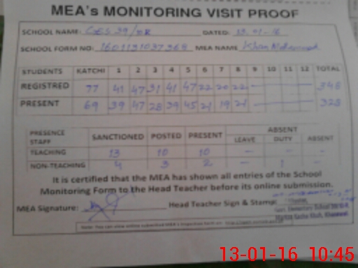 | Certified that this School was Inspected by the Undersigned MEA/DMO Today and the Information Stated Above is as Per Record. | |||||