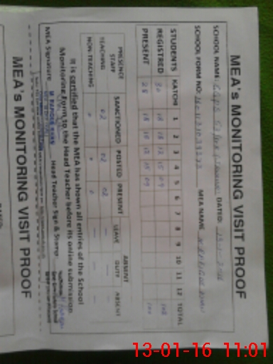 | Attendance Register | Head Teacher | MEA with School | Visit Proof |