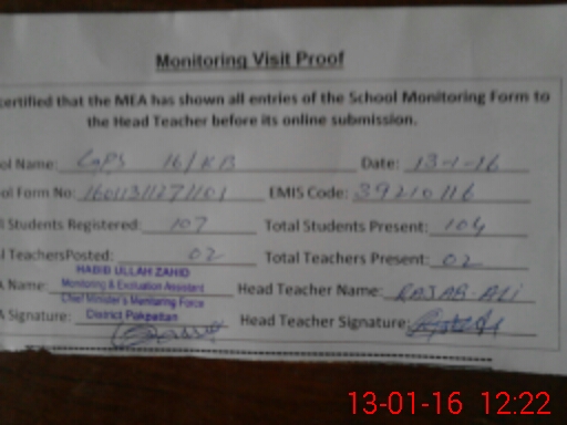 | District: PAKPATTAN | Tehsil: PAKPATTAN | Markaz: PAKPATTAN 4 - MALE | Level: Primary | |