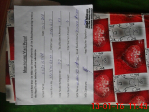 | Attendance Register | Head Teacher | MEA with School | Visit Proof |
