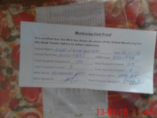 | Certified that this School was Inspected by the Undersigned MEA/DMO Today and the Information Stated Above is as Per Record. | |||||