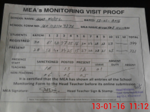 | Certified that this School was Inspected by the Undersigned MEA/DMO Today and the Information Stated Above is as Per Record. | |||||