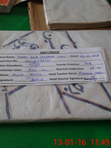 | School Visited by School Health & Nutrition Supervisor (No. of Visits) | 1 | Name1: | MUHAMMAD ASIF MUSTAFA | Name2: | NIL |