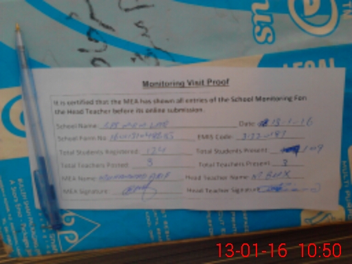 | Attendance Register | Head Teacher | MEA with School | Visit Proof |
