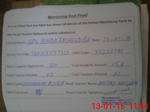 | EMIS Code: 33250191 | Name of School: GPS BINDA RASHEED PUR | |||