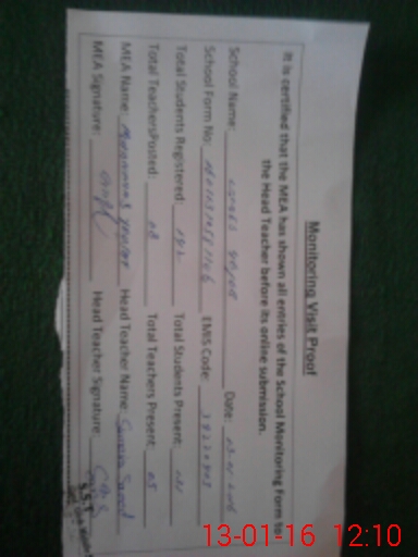 | Certified that this School was Inspected by the Undersigned MEA/DMO Today and the Information Stated Above is as Per Record. | |||||