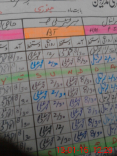 | CNIC | Full Name | Designation | R/C | Absence During Last Calender Month |