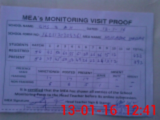 | Attendance Register | Head Teacher | MEA with School | Visit Proof |
