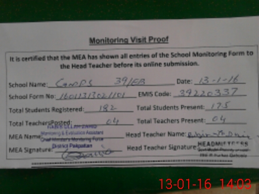 | EMIS Code: 39220337 | Name of School: GMPS CHAK NO 39 EB | |||