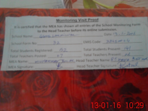| Certified that this School was Inspected by the Undersigned MEA/DMO Today and the Information Stated Above is as Per Record. | |||||