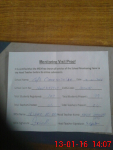 | Certified that this School was Inspected by the Undersigned MEA/DMO Today and the Information Stated Above is as Per Record. | |||||