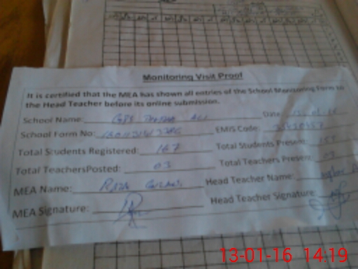 | Attendance Register | Head Teacher | MEA with School | Visit Proof |